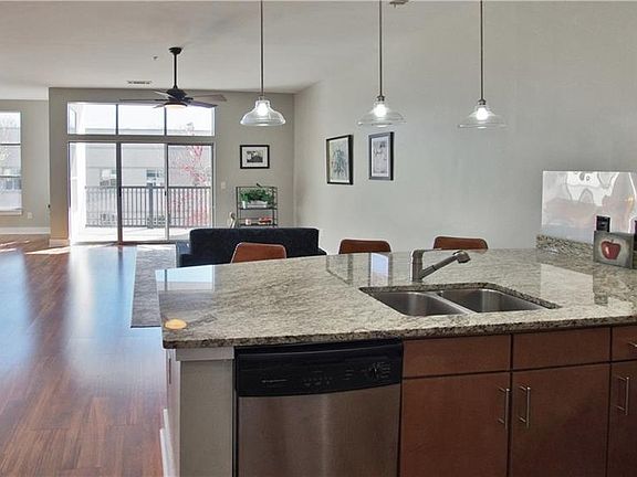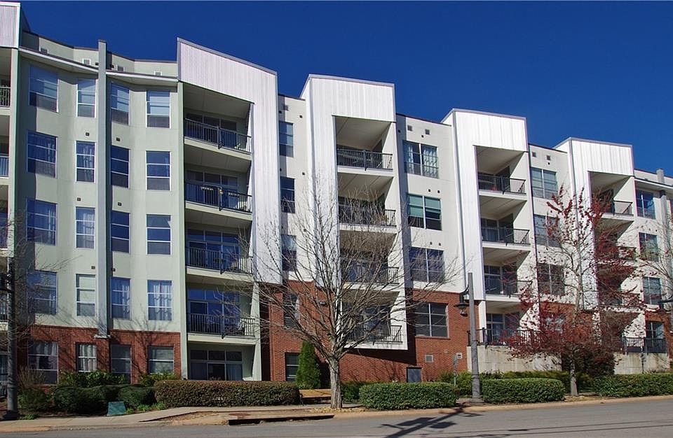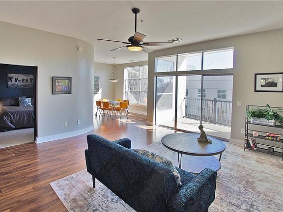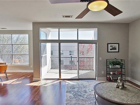Bright and light - Decatur life! Contemporary, "sunny-side up" loft is just steps from everything "Indie-Catur." You'll love the open kitchen, living & dining floor plan, private bedroom w/ wide barn doors & W-I closet & lg bathrm w/ soaking tub & a porch. Entertain easily: kitchen has granite counters, SS appliances & backsplash and 4-seater bar w/ pendant lights. Also: hardwood floors, rounded walls, high ceilings PLUS two walls of south-facing windows for lots of natural light. Community has gym, pool, rec room and gated parking. Exceptional space for a 1 BR.