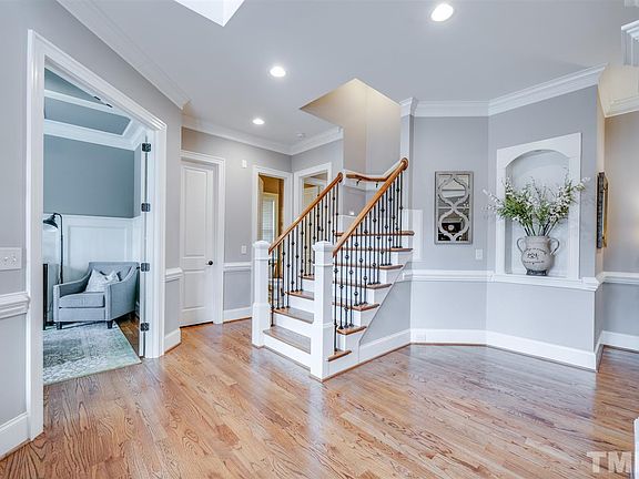 One of a kind home in coveted Bella Casa ft. jaw dropping OUTDOOR OASIS w/ salt water pool, waterfall & hot tub, outdoor kitchen & bar-all BACKING TO RARE PROTECTED WOODED AREA. Site finished hardwoods. Gourmet kitchen w/ Sub Zero & Wolf apps, soft close cabs & under cab lighting. Huge Master suite w/ opulent bath & incredible WIC. 1st floor guest suite w/ full bath. Screened porch w/ stone FP & endless views of mature tree-line! Walk to Apex Nature Park & Seymour Athletic Fields. Award winning schools!