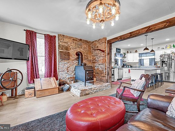 Come see this remodeled 2-story detached home, nestled out in the country in Chanceford Township / York County. The property is located on a large corner lot and has a stream running through it. This house has been remodeled from top to bottom and features a brand new kitchen, a brand new bathroom, refinished hardwood floors, new wood flooring on the 1st floor, new vinyl flooring, new paint, new fixtures, and fresh landscaping. The 1st floor features a new kitchen with granite countertops, stainless steel appliances, and a large island. The dining room has a stone hearth / surround for a wood stove and access to an outside balcony. The living room is abundant with natural light and flows into the family room. There is also a laundry room, a half bathroom, and access to the basement. The 2nd floor features (4) nice-sized bedrooms (one with a walk-in closet), and a large new bathroom with a tiled shower and double bowl vanity. There is a large, semi-finished room on the 3rd floor that is great for attic storage. The basement is accessible from the inside or outside of the house. There is also an oversized, detached 3-car garage with plenty of extra storage space. The property has a well and a new on-site septic system. Part of the property sits in a flood plain, but most of the house structure itself appears to be out of it. This house used to border the train tracks that were used by the Ma & Pa (Maryland & Pennsylvania) Railroad in the early 1900’s. The neighboring house used to be the train station, town store, and post office. One of the railroad tracks is still visible at the property line. Schedule your showing today, and come see the rich history and charm this property has to offer.