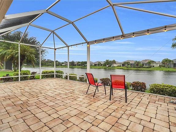 LAKE VIEWS, OVERSIZED LANAI AND EXTENDED GARAGE!! This beautiful 3-bedroom, 2-bathroom property is nestled on an oversized lakefront lot, offering serene water views and luxurious upgrades throughout. Step inside and be greeted by the elegance of plantation shutters that perfectly complement the natural light flowing through the spacious living areas. The bedrooms feature updated flooring, and both the master and guest bedrooms include custom closets designed to maximize storage and organization. The kitchen and bathrooms boast premium finishes and a sediment water filter system, ensuring fresh, clean water for your entire home. Enjoy the peace of mind that comes with a 2022 A/C system, keeping you comfortable year-round, and the security of an automated hurricane roll-down shutter that protects the lanai during stormy weather. The extended garage provides extra space for storage or a workshop, accommodating all your needs. Take advantage of the exceptional resort-style amenities, including a cutting-edge fitness center, luxurious pool with a water slide, children's playground, dog park, and courts for tennis, pickleball, volleyball, basketball, and bocce ball. There's always something happening with community Club Sandoval gatherings. Plus, you'll be just a short golf cart ride away from a variety of fantastic restaurants and entertainment options, making every day feel like a vacation.
