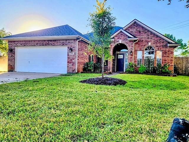 This 4/2/2 in Brittany Lakes in League City has been updated & is ready for immediate move-in. New AC '24, new roof '23, Generac whole-house generator, on demand water heater, AC in the garage, large cul-de-sac lot & huge playset--you can't pass this one up! The kitchen has ample cabinetry, quartz countertops, large island, eat-in/breakfast area & accent lighting. Kitchen is open to the large family room w/ gorgeous gas fireplace & access to the large covered patio. Primary suite has a beautiful bath w/ large walk-in closet & private access to the rear patio. The 3 additional bedrooms are separate from the primary & all have generous closet space. New carpet & neutral paint throughout. The large office/media room can be used for remote work or a possible additional bedroom. All appliances included, zoned for CCISD, fantastic location! You don't want to miss your chance to lease this fabulous home!