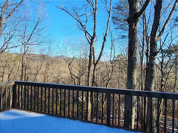 Brick fireplaceMountain vistasLoads of natural lightUpdated kitchenExpansive private decksPeaceful wooded surroundingsCorner lot