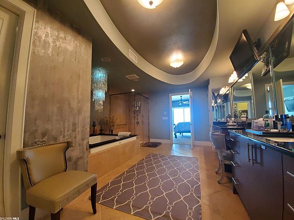 Fabulous East Corner unit professionally decorated from Posh Interiors and in excellent condition located in Turquoise Place -one of the most sought after complexes in Orange Beach. This 4 Bedroom 4 1/2 bath unit offers over 3500 square feet and is a one owner unit that has Never been rented. Beautiful wrap around balcony features unbelievable views to the South, East, & North backwaters, with quality outdoor furnishings, hot tub, and balcony grill plus sink. The spacious living area has plenty of seating space, fireplace, wet bar w granite countertops, ice-maker, wine cooler, & surround sound. The Dining Room overlooks the Gulf & the beautiful backwaters of Cotton Bayou, Bayou St. John & Perdido Pass bridge. The open kitchen has granite countertops, 2 dishwashers, subzero refrigerator, pantry, custom pendant lighting, & large breakfast bar to allow for socializing with family and friends while preparing snacks & meals. The master bedroom has custom linens & custom remote drapes, and is on the Gulf side & separated from the other bedrooms for privacy, but also offers access to the Gulf Front balcony. The master bath features a large jetted tub, separate shower with 4 shower heads, double vanities, make up area, 2 linen closets, water closet, and oversized walk in closet w custom built ins. All 3 Guest bedrooms are spacious and have their own bath plus access to the back balcony with views of some of the most incredible backwaters Orange Beach has to offer. Large outdoor & indoor pools, hot tub, steam/sauna, lazy river, tennis, playground, & pool area snack bar, w live entertainment during summer. Don't miss your opportunity to own one of only 19 East Corner Units in the popular Turquoise Place building with the lazy river.