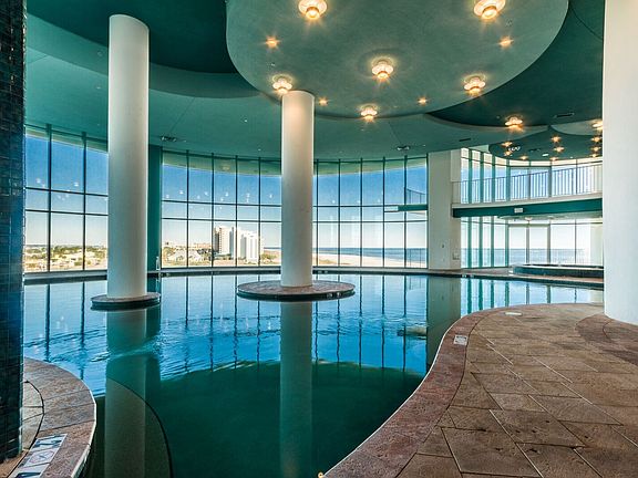 Welcome to Turquoise Place, the most luxurious resort condominium on the Alabama Gulf Coast! This Private corner unit is on the 9th floor with unbelievable views of the Gulf of Mexico. Enjoy the best sunsets around! This unit is complete with upscale decor and high end finishes around every corner. Travertine Tile, Crown Molding, Granite Countertops, All Stainless Steel Appliances with Wet Bar, Custom Cabinetry, Expansive Patio features Hot Tub and Gas Grill with incredible views of the Beach and Gulf of Mexico to name a few features. This unit is sold fully furnished and has covered assigned parking. First Class Complex Amenities: Indoor/Outdoor Pool with Lazy River, Fitness Center, Tennis Courts, Kids Playground, Steam/Sauna and so much more-- this unit has excellent rental history! This unit will not last with at this great price!