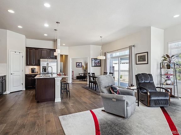 Nestled in the heart of Beacon Point Townhomes, this end unit offers the epitome of convenience and tranquility. Just minutes away from the vibrant shopping and dining scene at Southlands Mall, and a stone's throw from the serene Aurora Reservoir, residents here enjoy the best of both worlds. Stepping inside, you're greeted by an inviting open floor plan adorned with contemporary modern finishes and boasting 10-foot ceilings. The gourmet kitchen, complete with a gas range, island, and walk-in pantry, is a chef's delight, perfect for culinary adventures or casual gatherings. Wide plank engineered hardwood floors grace the main gathering areas, lending warmth and sophistication to the space. The primary suite is a sanctuary unto itself, featuring a generously sized spa-like bathroom and ample closets throughout the home ensure storage is never a concern. Convenience meets practicality with a dedicated laundry room equipped with a utility sink and cabinets. And with an unfinished basement boasting tall ceilings, the potential for customization and expansion is limitless, offering the opportunity to tailor the space to suit your unique needs and preferences. Outside, a beautiful walking path leads to your front door, enhancing the sense of community and providing a picturesque backdrop for leisurely strolls or morning jogs. This Main floor living gem in Beacon Point Townhomes offers the perfect blend of luxury, convenience, and potential, promising a lifestyle of comfort, style, and endless possibilities.