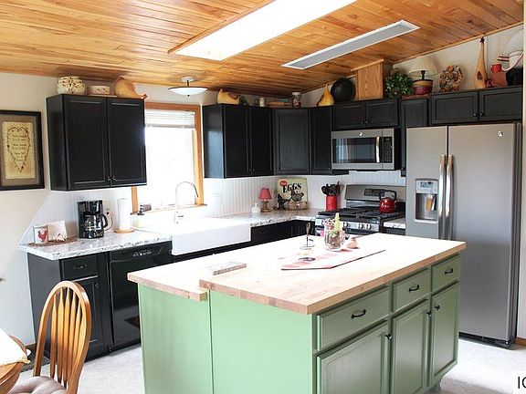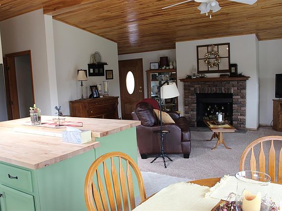 Beautifully updated home has been lovingly cared for and it shows! This immaculate 4 BR, 2 bath with its warm colors and woodwork inside, to its stone facade and cedar siding outside, will make you never want to leave! The newly remodeled kitchen is part of a spacious open floor plan so you can enjoy the fireplace from every angle. Great feature includes all new windows and sliding doors, with lifetime warranty that transfers to new owners. Practical luxuries include Central Air, dual fuel/off peak electric, including in-floor heat in the attached garage. The detached 2 stall garage with workshop area is heated too! Sip a cup of coffee on the second level wrap around deck that overlooks the park-like landscaped yard. Privately situated on 6 acres, surrounded by a buffer of mature trees and tucked back off the road, you'll feel like you're in the country but only a few miles from town. Top it off with a compliant septic.