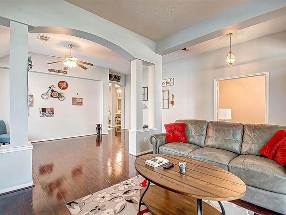 Check out this highly desirable home on an oversized lot and with no back neighbors! Stand out features include custom accent paint, elegant wood flooring, splendid high ceilings with sky light accents in the dining area, and a newly updated walk-in shower in the primary bathroom. Outdoor entertaining and relaxation is enhanced by the large covered patio.