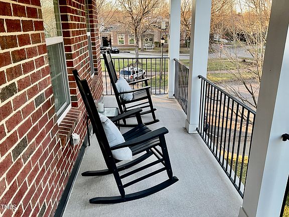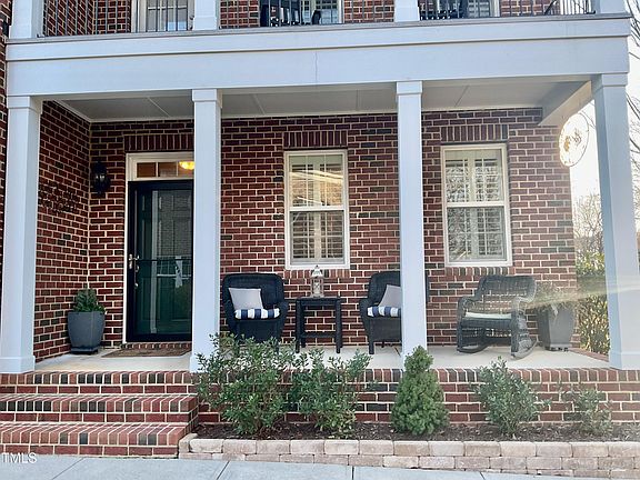 Welcome Home! Beautiful townhouse located in the highly desirable community of Bedford. Perfect location with easy 540 access. This end unit townhouse is located right across the street from the Clocktower shops and restaurants, within walking distance to the pool, clubhouse, tennis/pickleball courts, and playground. Townhouse is just a few hundred yards to the Neuse River Greenway with over 26 miles of greenway trail. Outside, this townhouse boast two covered porches with one coming off the primary suite, a covered patio off the back of the house and rear entry garage (plus plenty of extra parking in front the townhouse. Inside the house features a gourmet kitchen with granite countertops, backsplash, stainless steel appliances, and 42 inch cabinets. The house has newer LVP flooring throughout most of the home and the entire interior of the home was painted in 2023. Gorgeous new plantation shutters installed throughout the home in 2024. Upstairs the large owner's suite has a trey ceiling and large walk-in closet. Come make this your next home!