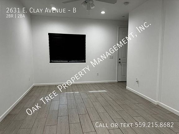 AVAILABLE NOW! Located in Fresno, this charming newer two-story townhome features two bedrooms and 1.5 bathrooms, with a full bath upstairs and a convenient half bath downstairs. The spacious living room and kitchen area are perfect for entertaining guests or simply relaxing after a long day. The townhome boasts wood plank tile flooring downstairs, quartz countertops, stainless steel appliances, and brushed nickel hardware for a modern touch. Enjoy the convenience of a laundry room area and the privacy of a one-car garage, with plenty of additional private parking in the back. Don't miss out on this fantastic opportunity to call 2631 E. Clay #B your new home! This home has Solar. 1-year lease. No pets. A refrigerator is provided for the tenants use (no warranty). Tenants will need to provide their own washer & dryer. Tenants will be responsible for all utilities including PG&E, water, sewer, trash, and solar true-up. READY TO APPLY? Brushed Nickel Hardware Full Bath Upstairs Half Bath Downstairs Laudry Room Area Newer Home One Car Garage Plenty Of Private Parking In The Back Quartz Countertops Spacious Kitchen Two Bedroom Two Inch Blinds Two Story Wood Plank Tile Flooring Downstairs