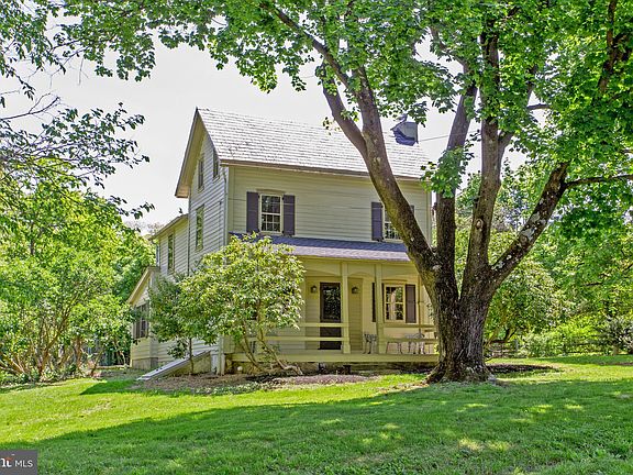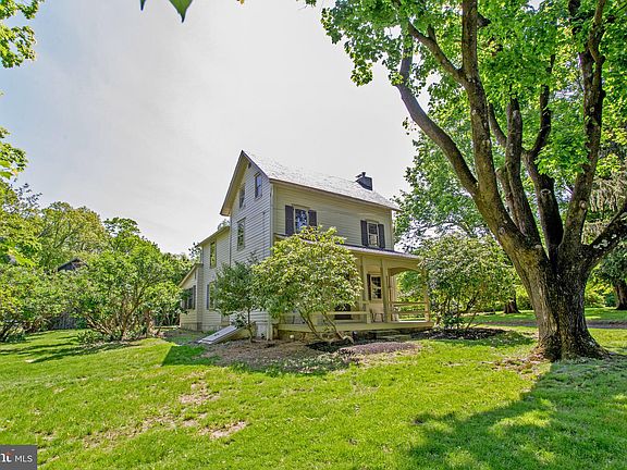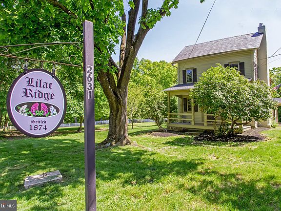 Enchanting c.1874 Bucks County farmhouse set on 1½ lush acres on a quiet road. Originally the Morgan Homestead, it is now affectionately known as Lilac Ridge due to the profusion of multi-colored lilacs surrounding the property on the ridge. This sweet home boasts period wood clapboard siding, a slate roof, rocking chair front porch, and original details throughout. Enter through the back foyer with plenty of room to hang your coat and hat, and a conveniently placed powder room. The charming kitchen has stainless steel appliances, plenty of beautifully preserved wood cupboards and wood floor that continue through the formal rooms. Double-sided glass paned cabinets take advantage of the abundant natural light and hang above a pass-through to the adjacent dining room with built-in corner cupboard and chair rail. The bright and sunny living room spans the width of the home and features a woodburning fireplace centered in archetypal built-ins, and the original entrance that leads out to the maintenance-free front porch. A sunroom connects to the back foyer and dining room, and is drenched in light from a wall-of-windows. French doors lead out to the Bluestone patio overlooking open meadows, specimen trees, and flowering perennial shrubs. Upstairs there are three bedrooms, a large full bathroom, and the finished third floor makes a wonderful bonus space for an office or library. The basement has laundry, storage, and bulkhead doors up to the yard. With a large barn, chicken coop, and fenced-in, in-ground pool, this home has everything you need to make the most of country living, while being ideally located 80 miles from NYC, 30 miles from Philly, and minutes from both New Hope/Lambertville and Doylestown.