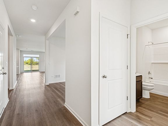 Envision yourself at 2631 Harnish Drive in Algonquin Illinois, a beautiful new home in our Grand Reserve 55+ community. This ranch home has a walk-out basement and will be ready for a mid-fall move-in. It includes full sod and landscaping and has a covered back porch! This Clifton plan offers 1,863 square feet of living space with a flex room, 2 bedrooms, 2 baths, and 9-foot ceilings. Enjoy the Clifton's open concept great room and kitchen. The kitchen layout includes a large island with an overhang for stools, 42-inch designer cabinetry with crown molding and soft close drawers. Additionally, the kitchen features a pantry, modern stainless-steel appliances, quartz countertops, and easy-to-maintain luxury vinyl plank flooring. Enjoy your private get away with your spacious primary bedroom and en suite bathroom with a raised height dual sink, quartz top vanity, and walk-in seated shower with ceramic tile walls and clear glass shower doors. All Chicago homes include our America's Smart Home Technology, featuring a smart video doorbell, smart Honeywell thermostat, smart door lock, Deako smart light switches and more. Photos are of similar home and model home. Actual home built may vary.