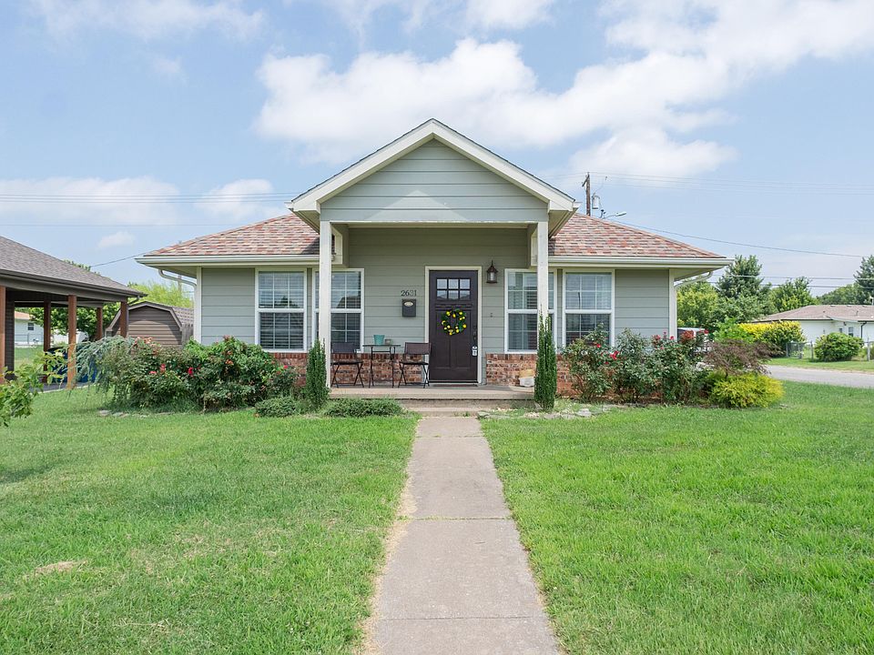 Looking for style on a budget? Come tour this wonderful wide open floor plan with solid flooring throughout! You will love the kitchen with custom cabinets, eat-at bar, granite counters, and stainless appliances. When you are ready to relax, check out the spacious master suite with tile shower and dressing area. Made for easy living with no steps and ample closet space, this home is centrally located close to Joplin High School and area restaurants. Complete with a fenced yard off the 2 car garage.