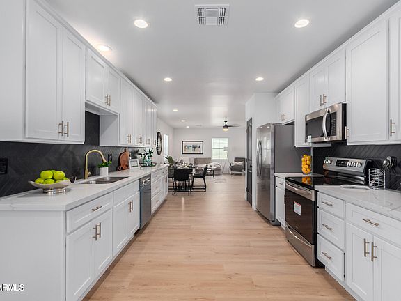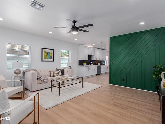 Perfectly remodeled 4 bedroom-2.5 bath Coronado District home. Amazing location near great restaurants, museums, nightlife and Downtown Phoenix. Front entry with custom wood work wall- modern and classy. White shaker cabinets, herringbone backsplash, hardware and granite countertops and pantry make these an ideal kitchen for the chef in the family. Separate family room with large sitting area and direct access to the backyard and rare separate 2 car garage. Master suite with oversized tiled shower, dual vanities and walk in closet. Check out the huge laundry room with plenty of storage, clothes hanging area and cabinetry. Once secondary bedroom offers direct access to outside- perfect at home office or guest room. Low maintenance backyard with turf and pavers. Fully permitted home w/ city