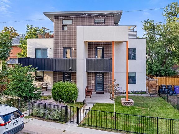If modern contemporary architecture combined with a stunning historic neighborhood is of interest to you, then look no further because this is it! Iconic River Drive has character and charm that's as good as it gets in NW Denver. Just 50-something steps to Jefferson Park (four blocks long). It's about 40-steps to Briar Common Brewery + Eatery, one of NW Denver's best hangouts. Many other coffee shops, restaurants and shops are skipping distance away. It'd be nearly impossible to find a better combination of walkability and commutability than this location being about as city-close as anything could be in any of the wildly-popular NW Denver neighborhoods. Confluence Park (think REI & the Aquarium), Riverfront Park, LoDo, LoHi, Cherry Creek, and The South Platte River are all walkable or rideable in just a few minutes via a protected bike lane that's less than 30-feet from the garage of this home. Interior finishes are splendid. The natural light is amazing. The room sizes are grand and it's a great open-concept main floor. These original owners have made some significant upgrades to doors, appliances, home automation and more. The ceiling height in the basement + three gigantic egress windows + rough-in for a fifth bathroom make this a phenomenal space for a mother in law suite, a theatre, a second home office or so much more. The outdoor living spaces are inspiring including an enormous rooftop deck where you have breathtaking downtown views, a balcony on the second floor, a front porch, and fenced yard where you and your pup can socialize with the neighbors and a private back patio and yard where you might enjoy a BBQ with your friends.