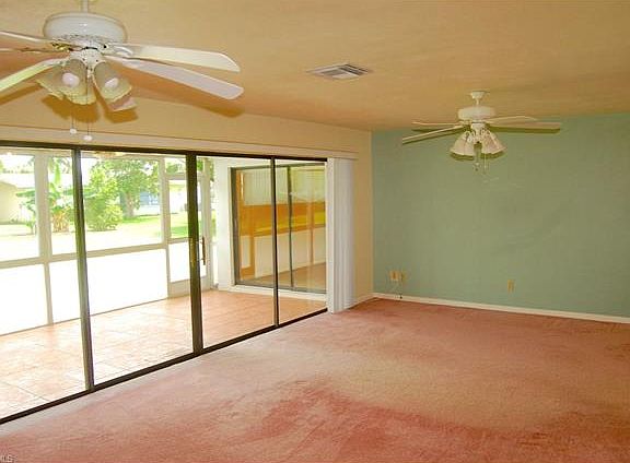 Meticulously maintained mid century home just off of the desirable Veterans Parkway. Original Terrazzo flooring through out home, and has been carpeted over in main rooms. Tiled kitchen has great layout with breakfast nook, built in desk, tons of storage and natural light. The living/dining area offers a great open space with oversized sliders that stretch almost the whole length of the room. All bedroom windows have metal awnings that offer shade from direct sunlight, quick and easy securing for storm protection which can lock in to place for additional security. This home is situated on a beautiful lot with lush grass and tropical landscape easily maintained with an irrigation system. Located in southeast Cape Coral this established community offers close proximity to amazing shopping, prestigious restaurant, and access to Cape Coral Pkwy.