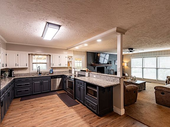 100% USDA financing eligible location (talk to your lender for complete details)! 2,216 sq ft of livings space! 3 bedrooms – 2 full baths – 2 acres! Featuring amazing open living space, a pretty, remodeled kitchen complete with refinished cabinets, granite countertops and stainless appliances! The cozy den has a wood burning fireplace, is MASSIVE, overlooks the backyard, direct back porch access! Plenty of space for eat-in dining, gameroom space or a home office! Additionally, there is a large living room that is open to the formal dining room! Pretty oak hardwood flooring flows throughout much of the home! The primary suite is roomy with a private bath with a tiled shower and updated vanity. The back porch offers a great outdoor entertaining space!!! Large Fenced backyard! Double carport! Large outdoor workshop space (this does need some TLC and is being sold as is)! NEW ROOF (2020)! NEW HAVC (2021)! Call to schedule a private tour!