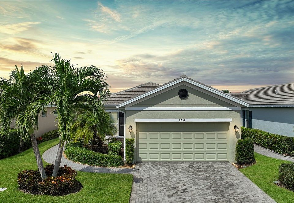 Beautifully maintained home located in the exclusive GATED community of SANDOVAL. Spacious open floor plan is bright and inviting. The large kitchen features GRANITE counters with breakfast bar, SS appliances and plenty of storage with custom wood cabinets and adjoining dining room. The living and dining room have gorgeous COFFERED ceilings and there is crown molding throughout. The spacious Owner's Suite has a walk-in custom closet, dual sinks, and large walk-in shower. Enjoy the Florida sun while lounging on the SCREENED lanai. Exterior of home includes NEW EXTERIOR PAINT, ACCORDION SHUTTERS, and a temperature controlled exhaust fan in attic. Come enjoy the Florida lifestyle at one of Cape Coral's most desired GATED communities. Sandoval is known for its relaxed lifestyle living with plenty of activities for all ages! RESORT STYLE POOL, FISHING PIER, 2 DOG PARKS, KIDS PLAYGROUND, BOCCEBALL, VOLLEYBALL, BASKETBALL AND TENNIS COURTS just to name a few. Call today to schedule your private tour!