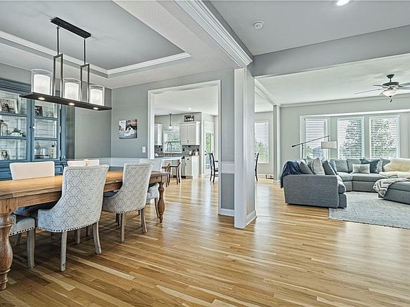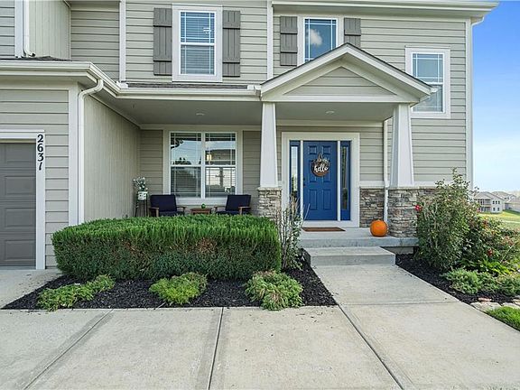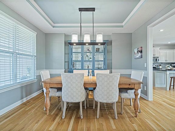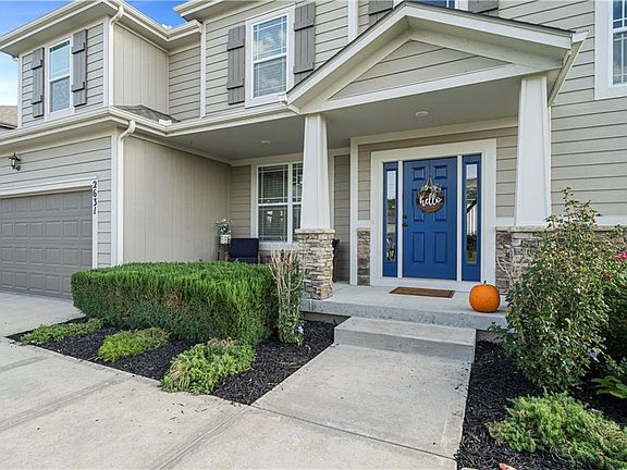 Introducing a truly magnificent 4-bedroom, 3.5-bathroom, 2-story home that checks all the boxes for modern family living. At just 7 years young, this residence showcases timeless elegance with its gleaming hardwood floors throughout the first floor. The heart of the home, a spacious kitchen with stainless steel appliances, granite countertops, and a large kitchen island, opens to a generously-sized breakfast room, perfect for casual dining. The adjacent formal dining room sets the stage for special gatherings. The trendy family room is a showstopper with its modern fireplace and feature-wall adorned with floating shelves. Upstairs, the master suite offers a separate tub and shower, plus a HUGE walk-in closet. Each bedroom has direct access to a bathroom, ensuring convenience for all. Outdoors, the fenced backyard overlooks a charming greenspace, providing privacy and tranquility. The spacious deck is ideal for outdoor entertaining. Plus, the wooden playset and trampoline are included! Additional features include fresh interior and exterior paint, recently cleaned carpeting, and a partially finished lower level with framing, electrical, HVAC, and insulation already in place - just add drywall and flooring to customize your space. This family-friendly neighborhood offers a pool, playground, and walking trails. And if that's not enough, the newly renovated Olathe Lake Complex is less than a mile away, promising endless recreational opportunities. Don't miss out on the chance to be the first to see this BEAUTY!