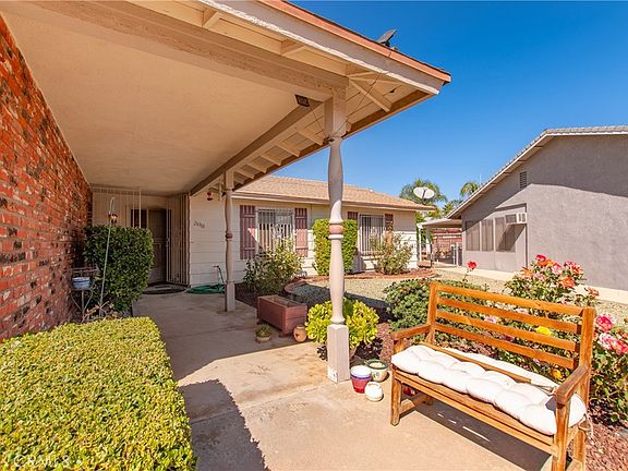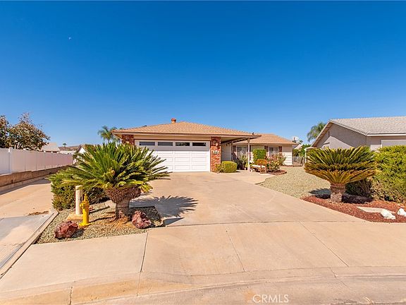 Nestled in a peaceful 55+ community, this charming single-family home offers 2 bedrooms, 2 bathrooms, a bonus room, and spans 1,393 sq. ft. on a spacious 0.30-acre lot. The home features an upgraded roof, air conditioner, and solar panels to help reduce electric costs, along with a low-maintenance hardscape yard, enjoy the fig, lime, lemon and peach trees, perfect for easy outdoor enjoyment. Inside, the updated kitchen shines with granite countertops and white shaker cabinets, and beautiful vinyl wood flooring flows throughout the main living areas, plush berber carpet in bedrooms creating a warm and cohesive look. Community amenities include a golf course, clubhouse, gym, various social clubs, pet-friendly rules, and two pools, offering both relaxation and recreation for residents. Located on a quiet street, this home is perfect for you and your loved ones. Welcome home!