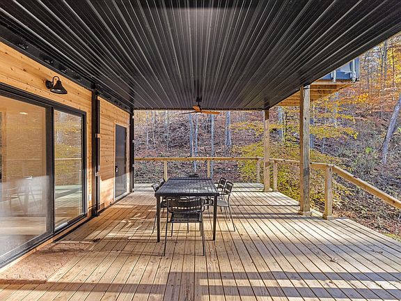 Outside allows for just under 7 wooded acres, a rooftop deck for star gazing, and a wrap around lower deck for entertaining. Inside, the home features a spacious light filled layout with streamlined modern finishes. From the kitchen to the stairway, every detail has been thoughtfully curated to feel modern and fresh. Lower level provides open kitchen, living room, with half bath, a main bedroom with walk in shower and dual sinks. Up the stairs provides an additional large entertaining space, two additional bedrooms, and a full bath. Every room offers a connection to nature though bright windows and open doorways. There is so much to this unique home to experience, with even more in the surrounding area from a new winery and general store just a mile away, ash cave within a 10 minute drive. The excitement of the hocking hills await!