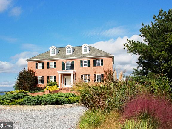Sunset Watch on the Wicomico River. Perfectly sited on 2.12 acres high above the Wicomico River. Home custom built with attention to quality and state of the art systems. Rose gardens, evergreens, and flowers compliment the lush green lawn that slopes to the beach at the rivers edge. This extraordinary home offers an open floor plan, light filled rooms with panoranic water views. Balconies and decks offer great areas for entertaining. Each of the four bedrooms has it's own private full bath.All counters in the home are granite. Floors are tile, hardwood and carpet. Appliances are stainless and cabinets are maple. Full basement is finished for parking, mecanicals and storage. Great open storage area in walk up attic.