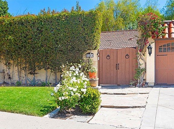 Beautiful Single Level home with great curb appeal and with authentic Spanish flair! Gated entry reveals a charming private courtyard covered with flagstone and graced with a massive water fountain. Enter through the Iron and Glass front door and enjoy a true open floor plan. Saltillo tiles complement the floors throughout. Comfortable and inviting living room with a cozy fireplace and high ceilings is a perfect place to entertain your loved ones. A large dining room rests between the kitchen and the private backyard. The kitchen offers an enormous island topped with gorgeous granite counters, Complimentary back splash enhances the counter tops. The Thermador stainless range and oven is waiting for serious chefs, a stainless Subzero refrigerator, and plenty of storage cabinets and drawers with convenient pull out feature complete this amazing space. Generous master bedroom suite has mirrored wardrobe doors, crown moldings, a remodeled bathroom with granite counters and tiled floors and all raised panel doors throughout. Two large secondary bedrooms share a bath. The garage is currently converted to a play room/bonus room. Enjoy the back yard fireplace on those cooler nights and relax with friends and family under the freestanding gazebo or the covered side patio in complete privacy. Conveniently located near shops and, toll road or the freeway. Great school district and with no homeowners' association dues and No Mello Roos, who could resist this perfect abode