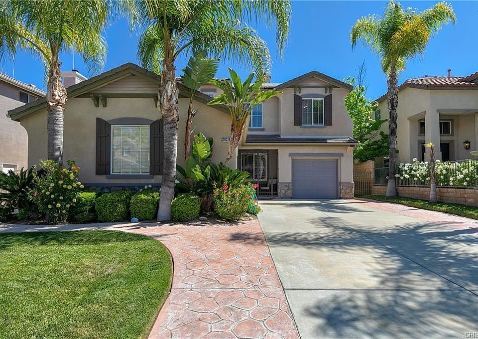 Spectacular 4-bedroom VIEW home in Stevenson Ranch! Walk in to a wonderful Living Room w/high-ceilings, Formal Dining Room (currently being used as an office), Large open Kitchen with huge center island open to Family Room w/Fireplace w/wall-to-wall windows facing backyard with spectacular canyon and city views (with Magic Mountain in the distance). Adjacent to the Family Room is a set-up dining room (which is an option for a 5th bedroom), and full bathroom with floor to ceiling marble are on the main floor downstairs. Upstairs opens up to a large Master Bedroom w/slider to balcony and private master bathroom with a large walk-in closet, soaking tub, stand-up stall shower and 2 separate vanities. Down the hall are 3 good-size bedrooms (2 w/walk-in closets), full bathroom with 2 sinks. Outside you will find a nice private yard with beautiful hard-scape, several tropical palm trees adorning the views. There is a split 3-car garage w/built-in storage shelves. Home is equipped w/SOLAR, whole-house, home is walking distance to Stevenson Ranch Elementary School - a blue-ribbon distinguished school and several parks with basketball courts, tennis courts, playground, walking track and plenty of space for gatherings.