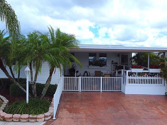 This exquisite home boasts more than 1900 sq ft of luxurious living space with outstanding curb appeal, more than one outdoor area, an open concept with cathedral ceilings, an oversized deck off master bedroom and an extra-wide accessible ramp. Recent upgrades all within two years include new high quality hurricane windows, new waterproof vinyl flooring, new vinyl siding, new water heater and pan, upgraded sky lights, electric upgrade with surge protector, total plumbing with transferrable warranty for new owner, Lenox AC system with ultraviolet light system, ventilation system sanitized, new roof (2.5 yrs), new driveway, impact resistant sliders with interior blinds, front Florida room built to hurricane standard with permit and fresh paint throughout! Upon entering this immaculate home, you are welcomed by the bright open concept of the living room and dining area. The kitchen has very nice quality white appliances, white cabinetry, corian countertops and a sunny breakfast area. Located off the kitchen is a comfortable Florida room perfect for morning coffee and evening relaxation. With beautiful flooring throughout, the wide-open floor plan offers much living and entertaining space. Upgraded modern-look ceiling fans and lighting fixtures throughout the home. The master bedroom features a large closet, a beautiful ensuite with a double sink and linen closet for all the extras, and sliders to a large deck surrounded by lush tropical greenery. The guest bedroom is bright and sunny with an overhead ceiling fan and boasts another large closet. The third bedroom is currently being used as an office but would also be a great space for a den or craft room. Lot rent is $930 and covers internet, cable and all park amenities. Located in beautiful Sun Key Village in Palmetto, FL. a safe and lively 55+ community that is handily available to dining, shopping, golf, beaches and medical facilities. Sun Key Village is also pet friendly (2 pets, 20 lbs). If you are looking for a unique home that has been meticulously cared for, you've found it! All listing information is deemed reliable but not guaranteed and should be independently verified through personal inspection by appropriate professionals. Integrity Mobile Home Sales cannot guarantee or warrant the accuracy of this information, measurements or condition of any property.