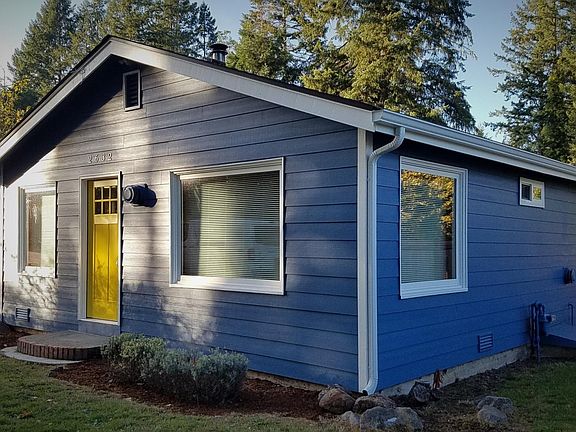 Great 1940 original neighborhood rambler with 1-car oversized partially enclosed carport sits on an 8,250 SF corner lot with partial Mt. Rainier and Budd Inlet views. This is a prestigious, quiet neighborhood adjacent to the Olympia Country & Golf Club. It's a 10-minute drive to Westside Olympia shopping, restaurants, and hospital/medical offices and 20-minute walk to nearest bus stop. Professionally cleaned top-to-bottom, thermally efficient, many new amenities, and yard recently fully serviced. INTERIOR SPACES: * 1 larger and 1 standard bedroom, each with a wardrobe closet. * Oversized comfortable and well-lit family room with southwest exposure and sliding door to patio. * Living room with rich wood plank walls, large view windows, and cozy woodstove. * Bright and cheery dining nook off kitchen and living room with southwest patio view. * Full bathroom with brand-new beautifully tiled tub/shower surround, brand-new shower faucet and controls, brand-new exhaust fan with light, and several storage options. * Walk-through kitchen with dishwasher, double porcelain sink with brand-new modern faucet, refrigerator/freezer, brand-new range/oven, and exhaust hood fan/light. * Utility/mud room with washer and dryer hook-ups, multiple storage cabinets, and carport access. * 1-car carport enclosed on 3-sides with workbench and lockable storage room. * Additional lockable storage outbuilding on-site with easy road and backyard access. INTERIOR COMFORTS: * Real, original hardwood flooring in living room, kitchen, dining nook, and hallway (all with new sealer). Comfortable carpeting in family room and bedrooms with sheet vinyl utility room and checkerboard ceramic tile in the bathroom. * Brand-new thermally efficient vinyl windows with insect screens and privacy blinds. * Brand-new fiberglass front door and hardware with brand-new LED porch and walk spotlight. * Recently painted throughout! * Gas radiant and forced-air heating. * Free-standing woodstove on tiled hearth and surround. * Newer gas water heater. * All appliances included with hook-ups for your washer and dryer. * Wired for cable and telephone. EXTERIOR AMENITIES: * Beautiful corner lot with mature landscaping frequented by wildlife. * In addition to the carport, there's driveway space for 1 car and a graveled street-front space for 2 or more guests. * Large southwest-facing paver patio off the family room shaded by a mature cherry blossom tree and lit by a brand-new LED spotlight. * Spacious back yard for potential gardening, picnics, hammock, or whatever you desire to enjoy and relax. * Well maintained yard, bushes, and trees with freshly barked garden areas and whimsical stepping-stone pathways. * Brand-new architectural roof and gutters. * Brand-new fiber-cement siding and paint. BRIGHT * CHEERY * TRANQUIL * CLEAN * TIDY * COZY * CONVENIENT Excellent water (well) and sewer (on-site septic) included! Tenant pays for power, gas, garbage, and cable/telephone.