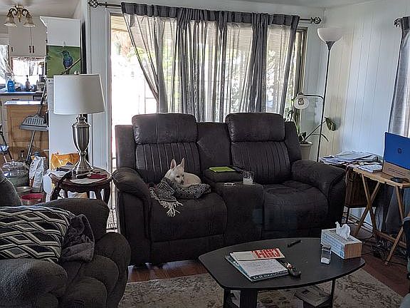 This little home just may be what your looking for your "mother in law" or make it your own! 2 bdrms, 1 bath, wood burning stove in the living room, nice bathroom,! It has a two car garage and a carport. Home is being "SOLD AS IS", come take a look for the price you will like it! Because of the year of the mobile it has to be a cash deal.