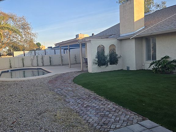 MUST SEE Remodeled 3 bedroom, 2 bath rental. Newer flooring throughout, kitchen cabinets, granite countertops. Located on a North/South facing lot close to Mountain Preserve. Living room with vaulted ceiling and fireplace. Covered patio and pebble tec pool in backyard. New roof in 2022. Tenant responsible for eclectic, water, and pool pool maintenance. Contact for all move in fees and deposits. Pets need to be landlord approved.