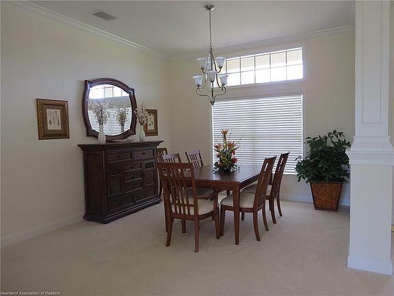 What a beauty. If you are looking for a beautiful home in a quiet neighborhood, you just found it. The home features 10 foot ceilings with crown molding, 12 feet of pocketed sliding glass doors leading to the lanai from the living room & sliding glass doors to lanai from the kitchen area. You will love preparing your favorite meals in the huge kitchen that has an island in the middle, Corian counter tops, tile back splash, stainless steel appliances, pull out shelves in lower cabinets & a built-in pantry with pull out shelves. The 14 x 20 foot family room is the perfect place to watch TV or just sit quietly and read a book. Also a great place to entertain special friends and relatives. The master suite features a huge bedroom, 10 x 8 foot closet, walk-in shower, 2 sink vanity and jacuzzi tub. The 3 car, (35 x 22 foot) garage is perfect for all your toys including over-sized vehicles,boat, golf cart, and/or large workbench. The 13 x 7 foot laundry room has 2 sets of 4 foot bi-fold doors for a huge storage area.There is half bath off the lanai. The pavered driveway and walkway lead you to the front door. You won't be disappointed as you enter this gorgeous home. SPECIAL OFFER FROM SUN N LAKE GOLF CLUB: 50% off Introductory Membership if first time property owner or first time golf course member. Includes trail fees. Offer good till end of 2020.