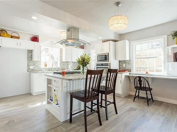 Classic historic remodel in Cleveland Neighborhood. Beautiful kitchen opened up to living area and dining area with large island. New stainless appliances, granite counter tops, tankless water heater, custom cabinets, artistic tile backsplash. 2 living areas: cozy den with wood burning fire place and formal living room with moc fireplace. Split level plan with 1 bed and 1 bath one one level and 2 beds and 1 bath on the upper level. Beds have wonderful built in storage. One bed has a charming carpeted sunny sitting area. Large open patio in fenced back yard. Pull thru gated drive to 2 car detached garage. Garage has addition that would make a nice workshop or additional storage.