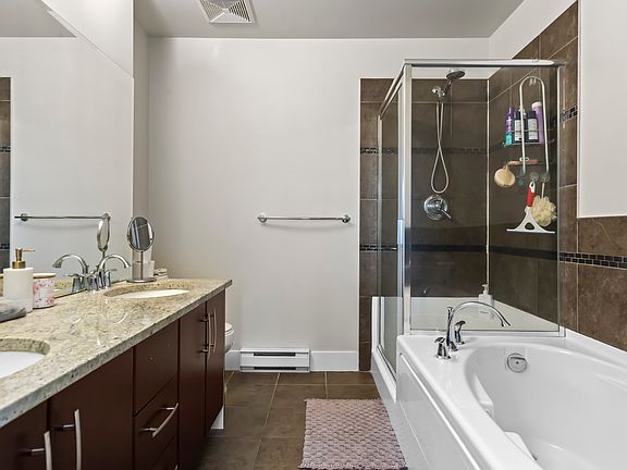 Welcome to Yale Crossing, a centrally located building situated in historical downtown Abbotsford. This wonderful community is a hub of 225 unique businesses and services including award winning restaurants, record & book stores, specialty clothing and mercantile boutiques, pubs and wine bar, quaint coffee shops, bakeries & deli, thrift store, salons, galleries and studios, gaming cafe and so much more. The area is known for its pedestrian-friendly atmosphere and revitalized heritage buildings mixing old with the new. Many colorful festivals and events occur here right outside your door. This would be your opportunity to have the ability to immerse yourself in this delightful culture every single day. This 3rd floor 2 bedroom 2 full bathroom unit has an eastern exposure with views of Mount Baker and the Coast Mountain range to the north, both exquisite and can be enjoyed daily from the comfort of your private deck. Appreciate the quality finishing of the cabinetry and granite countertops with undermount sinks. The ensuite has 5 pieces to include a large stand up shower separate from your soaker tub and dual sinks. Enjoy the cozy space in the winter with the electric fireplace but stay cool in the summer with built in A/C. The second bedroom has a very large closet but no window. There is a laundry room large enough to allow for some storage as well as your boots and coats. At 900 square feet, this is a perfect size for a couple or small family (Maximum 4 occupants). A maximum of 2 pets under 16"in height will be permitted with exceptional references and a pet deposit. $150 move in fee and $150 move out fee. A $200 cash refundable deposit must be paid to the Strata in case of any damage to common areas when moving in or out. 1 underground parking stall. Available July 15th, 2025. $2,200/month including hot water. Electricity extra. Sorry no extra parking stalls are available to rent. Hot water included.