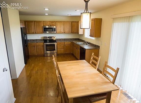 This home is perfectly located in its own little piece of Heaven. The grounds are always lush and maintained by the community. This lovely 3 bed, 3 bath home is move-in ready! Just minutes from Ft Carson and Peterson AFB. The open concept main floor is ideal for hosting parties or staying connected with family while preparing meals. Upstairs features an office with built in bookshelves, perfect as an extra hang out space. The large master bedroom is a great space to wind down at the end of the day, with a 5 pc suite. This cozy home has a new roof, new gutters, and new A/C.