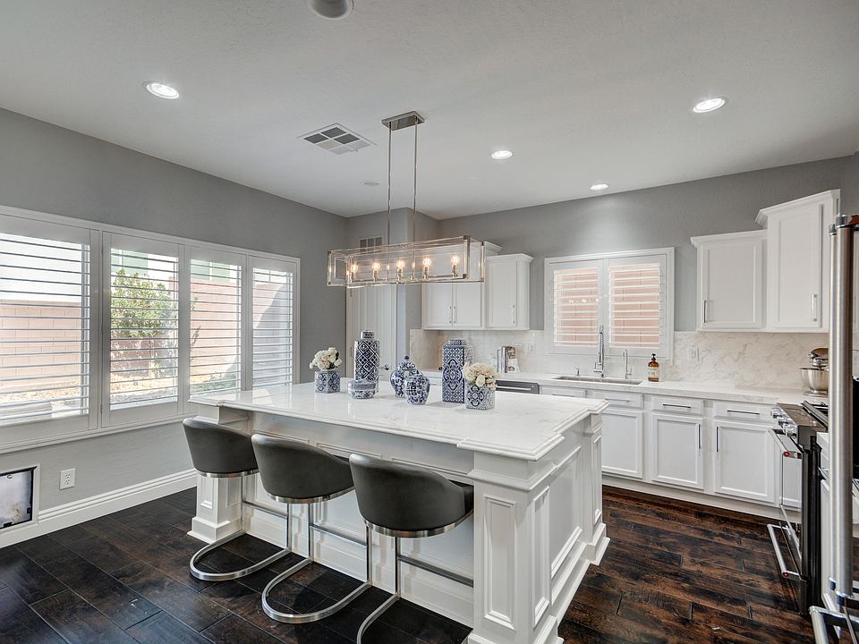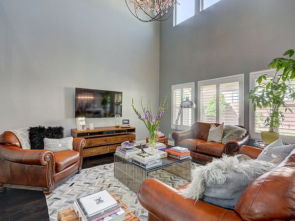 Welcome to luxury living in Madeira Canyon. Home features Carrara marble kitchen, custom cabinetry, top of the line appliances, and a wine fridge. Carries hardwood floors throughout the entire main level showcasing grand ceilings complete with restoration hardware chandelier and shutters. The backyard is a desert oasis complete with covered patio and firepit. Zoned for top schools, and access to tons of outdoor recreation, walking paths & trails.