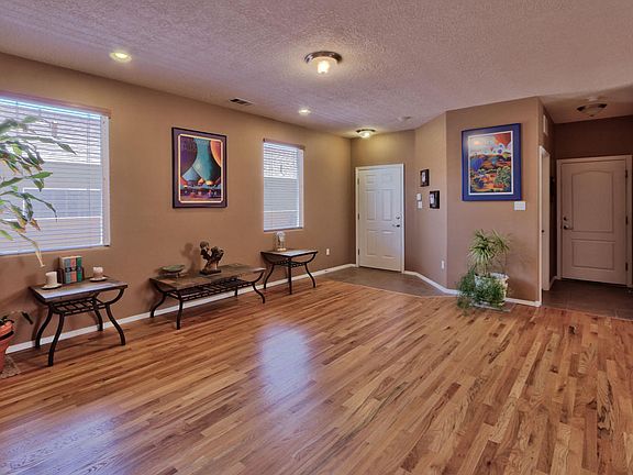 FABULOUS HOME in Cabezon! House features a chef design kitchen with granite counter tops & custom breakfast bar, under & over cabinet lightning. Wood floors in living areas except in kitchen, dining and bedrooms, tile in dinning and all wet areas, custom painting, custom wood blinds, pre-wire for sound system, Balcony off master with awesome views of the Sandia Mountains! HUGE master closet! Ceiling fans in all bedrooms, Extended covered patio, walk way & block wall. Gorgeous fully landscaped backyard with VIEWS and to enjoy family gatherings and entertainment. New roof in 2010 & refrigerator air in 2014! House is sold-as-is. Short sale! This is a must see house!
