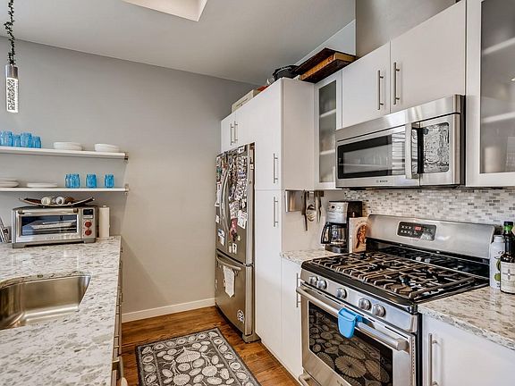 Incredible custom townhouse located in the highly coveted neighborhood of Jefferson Park. This street-facing 3 bedroom, 3 bath corner unit is full of perks. Upon entry from either the street facing front door or 2 car attached garage you will find a sizable bedroom and full bath that could also flex as an office space, workout room, or personal sanctuary for anyone needing extra room in the pandemic. Head up the stairs to find an expansive living main floor, flush with large Plantation Blind windows and natural lighting. The kitchen boasts granite countertops, stainless steel appliances, and plenty of cabinet space to store all your cooking needs. Adjacent, a large 2nd bedroom awaits you, complete with California Closet built in storage and vanity as well as a full bath. Follow the beautifully maintained hardwood floors to the 3rd floor for a massive master bedroom, complete with a full bath and large custom walk-in California Closet as well stacked washer/dryer. Don't stop there though - escape out the back door to a huge private patio with both city and mountain views. Grill (included) with friends or watch the breathtaking Colorado sunsets under intimate bistro lighting. You cannot beat this location when just steps away there is Sexy Pizza, El Cazo Mexico Grill, Jefferson Park Pub, Whirleybird Ice Cream, Briar Common Brewery, the Denver Broncos Stadium, coffee shops, hair salons, liquor store and grocery store. Enjoy shopping around the farmer's market in the summertime or playing fetch with your pup at the park. With no HOA and landscaping, snow removal, and water included, this home is a Denverite's dream! Unit includes water, snow removal, and landscape. No smoking.