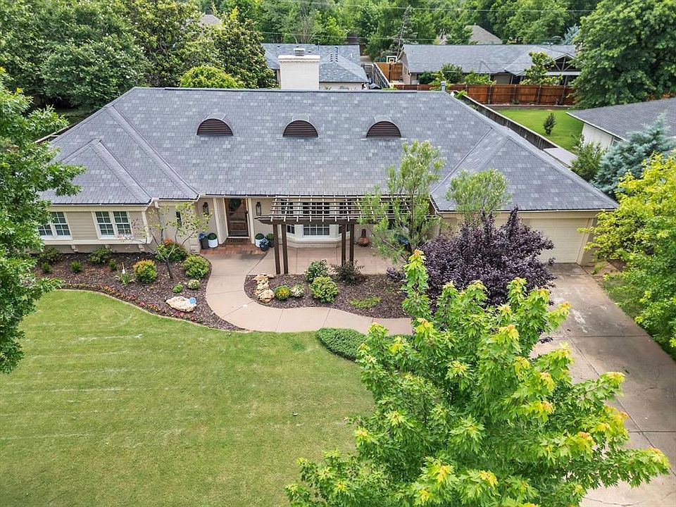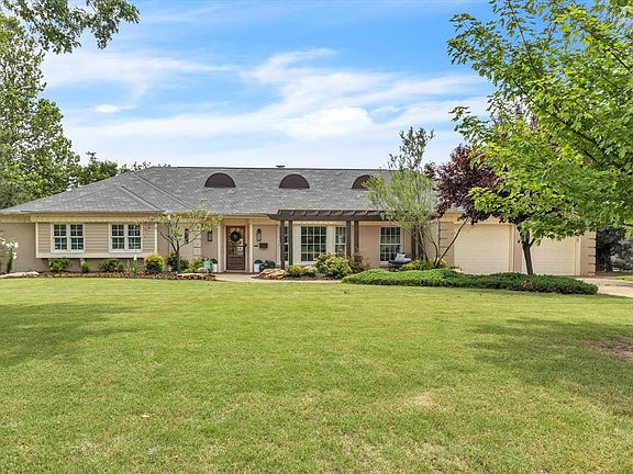 Located on one of Oklahoma City's most desirable streets, this updated ranch style home is ready for all of your summer parties and gatherings. Featuring bright and open living spaces, this 4 bedroom, 2.5 bath home is perfect for entertaining inside and out. Retreat to the large primary suite which features a stunning remodeled bath, home office space, seating area, and private deck. The sun-drenched living room showcases coffered ceilings, builtins, and a wood burning fireplace. All of the bedrooms and living spaces have large windows and new flooring throughout. The home also includes a flex space which can be used a home gym, office, nursery, or even a walk-in pantry. Step into the backyard and enjoy the generous lot which features a sparkling sapphire blue pool and two pergola-covered seating areas. Just minutes from the OKC Golf and Country Club, great restaurants, coffee shops, and shopping, this location is great for weekend lounging and people on the go!