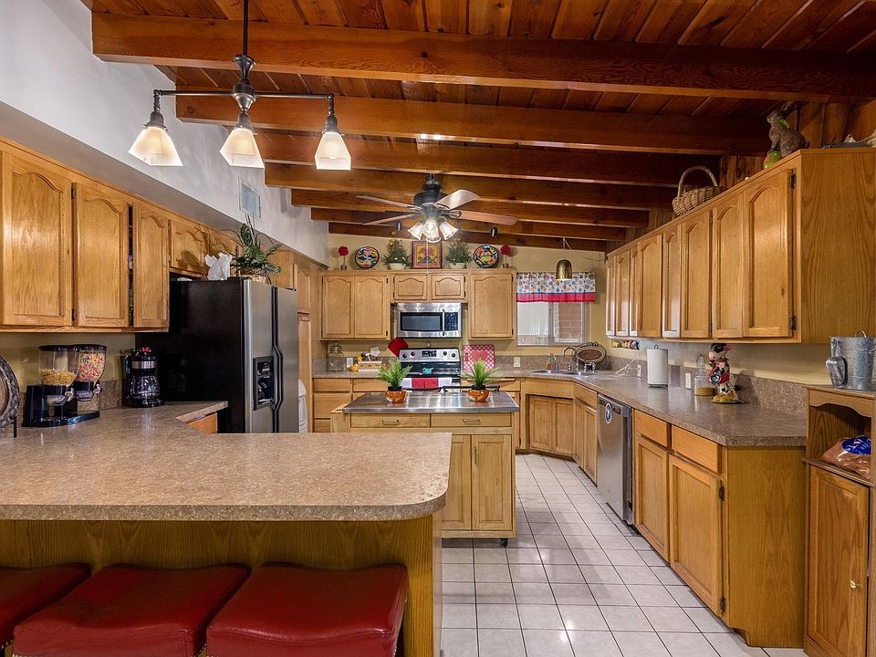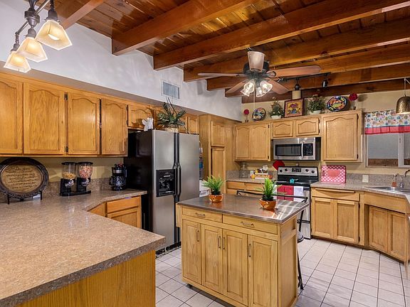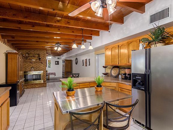 Super spacious home with room to roam! Inviting tiled entry foyer, large sunken living room with beamed ceilings and brick fireplace. Formal dining area with see-through fireplace to kitchen at the heart of it all. Breakfast bar, oak cabinets, stainless steel appliances and lots of counter space for entertaining. Slip into the extra-large family /game room off the kitchen for more entertainment or privacy! 3 bedrooms and 2 baths down the hall with ample storage and closet space. Down the hall and around the corner offers a large guest suite or 2nd master bedroom with double closets, French doors to patio and over-sized handicapped accessible bathroom with huge walk in shower. rear patio with built in fireplace-perfect for entertaining or relaxing! 4 car garage for all your toys and a huge 4 car carport covering. Out of the city, yet close to all amenities. So what are you waiting for? Call for private showing!