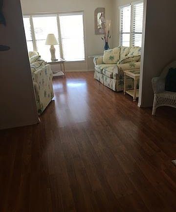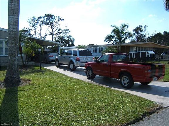 This home is beautiful inside. Over 1200 square foot of living space with 2 Florida rooms. (All weather rooms) New flooring thru out the home. Large master bedroom with master bath with walk in shower. Beautiful family room with wood laminate floor as well as the living room with large archway. Guest bedroom is right across the hall from the guest bath. This home is ready for someone to grab that little piece of paradise for the winter months or all year long. Quaint front porch that you can sit which enters into a Florida room on the east side of the home. Vinyl siding. Florida room on the carport side has the utility room attached and there is a second attached shed for storage of lawn equipment and the hurricane shutters. Club membership is being sold with the home and the annual fee is $320. Room to park 3 vehicles in the drive, one under roof. Great home and contact information for a mortgage company if you prefer to finance it. Call today for your private viewing.