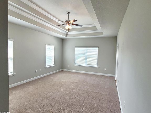 FANTASTIC FLOOR PLAN in The Reserve at Daphne! Four bedrooms, three baths PLUS an office PLUS a separate dining room - you will love all the space! The kitchen features tons of cabinet and counter space and room for at least four stools at the breakfast bar. Plenty of room for your favorite kitchen table & chairs, too. The bedrooms are comfortable with large closets - there are extra closets all over this house. The master suite features a lovely trey ceiling and large master bath with garden tub, large separate shower and large walk in closet. Everyone loves the resort style pool that features a fabulous lazy river - why leave home? Staycation! Have a boat? Keep it behind the fence on the concrete parking pad! Large, fenced backyard and oversized concrete patio will make outdoor entertaining easy. Last but not least, the common area across the street offers lovely views of the treeline. SO much to love about this home - it's move in ready and waiting for you - don't miss it!