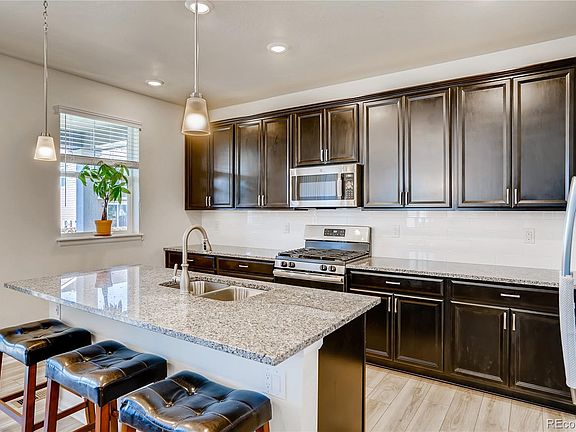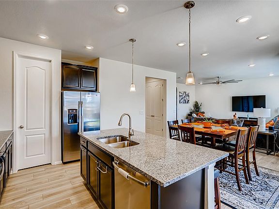 Just one year old two story! Great Curb Appeal!! Pride of ownership! Professionally landscaped! Fabulous gourmet open island kitchen with abundant cabinet and granite counter tops. Huge walk-in pantry. Sliding glass doors to lovely landscaped fenced yard. Spacious master suite with coffered ceiling and ceiling fan. Luxurious master bath. Lovely use of title. large unfinished basement. Over sized attached two car garage! Great Location close to airport, I-70. Buckley Air Force Base, Smart home features and solar panels.