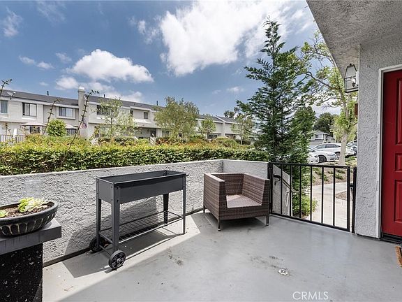Welcome to this inviting end-unit condo in the well-maintained Grandview community. The spacious front porch surrounded by greenery, is perfect for relaxing and hosting small gatherings. Step inside to find a light-filled family room with a large sliding glass door. The space flows smoothly into the kitchen and dining area, making it ideal for entertaining. Upstairs, the primary bedroom offers an en-suite with plenty of space for comfort. Two additional bedrooms and a full bathroom down the hall provides ample accommodations for family or guests. The interior is upgraded with dual-pane windows, sophisticated crown molding, and contemporary flooring throughout, enhancing both the aesthetic and function of the home. An attached 2- car garage with a laundry area adds convenience. The Grandview community offers a tranquil yet active lifestyle with dual swimming pools, tennis and basketball courts, a clubhouse, and extensive guest parking, all maintained to high standards. Located in a sought-after school district and close to shops, dining, and freeways, this condo is perfect for those looking for a blend of comfort and convenience.