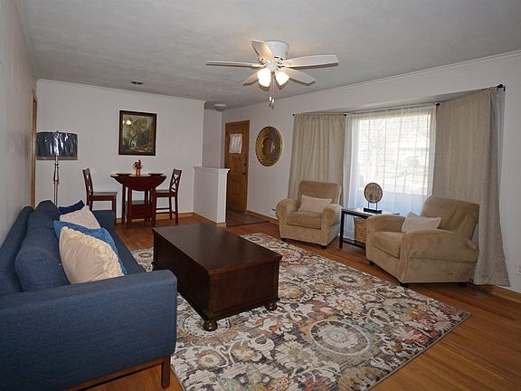 Recently updated 3 bedroom ranch style home in quiet, tree-lined neighborhood. Close to shopping and park. Attractive eat-in kitchen with new granite counter, herringbone backsplash, new LVP flooring and painted 2-tone cabinets in a light blue and gray. Spacious living room with bay window. Hardwood floors throughout living room and bedrooms. Finished basement offers additional space for holiday gatherings. It also has a bar and convenient half bath. Large deck overlooks back yard with fruit trees. Yum. Attached garage. Roof and mechanicals all with plenty of life left. Move Right In! Furnishings available for sale.