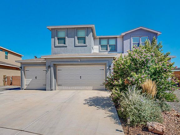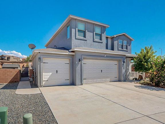 MOTIVATED SELLERS!! Stunning 2 Story Craftsman. Offering $10,000 to buyers for closing costs or buy down points. 1/3 ACRE/HUGE BACKYARD! Open concept! 3,245 sq. ft, 0.32 Acre, 4 bdrm, 3.5 bath, 3+ car garage. Home is fully upgraded. 2 primary suites, both have ensuites and walk-in closets. All bedrooms have ceiling fans. Bonus room! Gourmet upgraded kitchen with large island and 2 pantries. Ample storage with 2 sheds and under stairs storage. Built in 2021 in an upcoming Rio Rancho near many amenities. 3+ garage space with work area. Professionally landscaped which includes a 4-hole putting green, AstroTurf, oversized patio and covered patio. Generator Transfer Panel, 10' access gate. Views of Sandia. And Sunset views from oversized covered front porch.