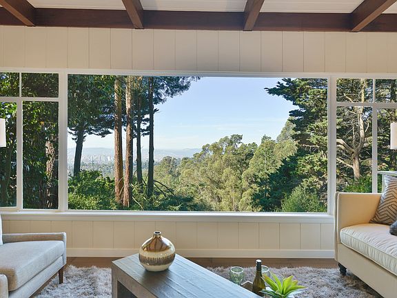 Immaculate Mid-Century Modern with sweeping bay and city views that includes 3-bedrooms, 2.5 baths plus separate complete mother-in-law unit. Open living/dining room with gorgeous wood-beamed ceiling walks out to a brick patio with a beautiful and majestic setting. The level out garden is accessible from main & lower levels and boasts mature redwood and live oak trees. An enclosed year-around, breezeway connects the kitchen to the patio and a separate laundry room/pantry with ample storage. A separate mother-in-law unit with magnificent bay views boasts an efficiency kitchen, full bath, and private entrance. This lovely home is located in the Piedmont Pines neighborhood of Montclair and its restaurants and boutiques with easy access to public transportation and highways. Tenant pays all utilities