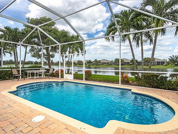 This beautiful Brentwood model is located within the gated community of Sandoval in SWFL. It has an expansive view of the lake as soon as you come through the front door. Location boasts a short walk to the Community Clubhouse and all the amenities this community has to offer. This is one of the few homes that has it's own Saltwater pool. Just imagine yourself sitting in the lanai / screened pool cage area and watching the wildlife on the lake. This home has a Gourmet Kitchen with a Convection Wall Oven and Microwave, along with a Custom Hood Vent & Stainless Appliances. Interior features are Granite, Crown Molding, Custom Window Treatments & Custom Wood Cabinetry. The Primary Suite features a Deluxe Primary Bath which has a Jacuzzi Tub, Chandelier, Granite & Oversized Walk-in Shower with Travertine tile and accent trim. The community offers basketball, volleyball, bocce, tennis, resort style pool, community room, exercise room, fishing pier, dog park, bike & jog path. Some Furniture may be negotiable. SWFL awaits you -what are you waiting for?