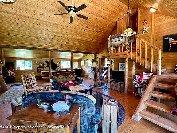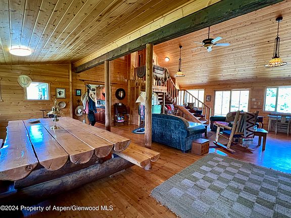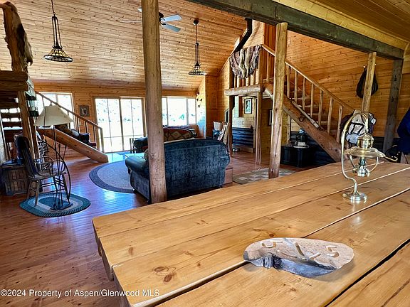 Come see your up river dream retreat at 2633 County Road 12. Perched on 2.6 acres at the mouth of Marvine Creek, this fully furnished 1982 cabin includes seven bedrooms, three full bathrooms, and one 3/4 bathroom. The spacious kitchen with dual workspaces is perfect for entertaining, while the large living room boasts spectacular views over the upper White River valley. Enjoy the charm of log stairways and full en suite bedrooms in each loft. With ample space for RV parking or corrals, along with domestic water, this property is a rare find. The Big Ridge Trailhead is 200 yards from the property. Marvine, Ute and Papoose Creek Trailheads are within a 10 minute drive from the cabin!