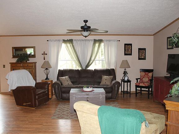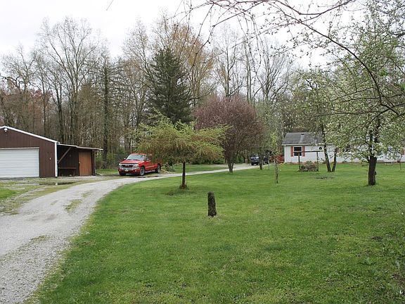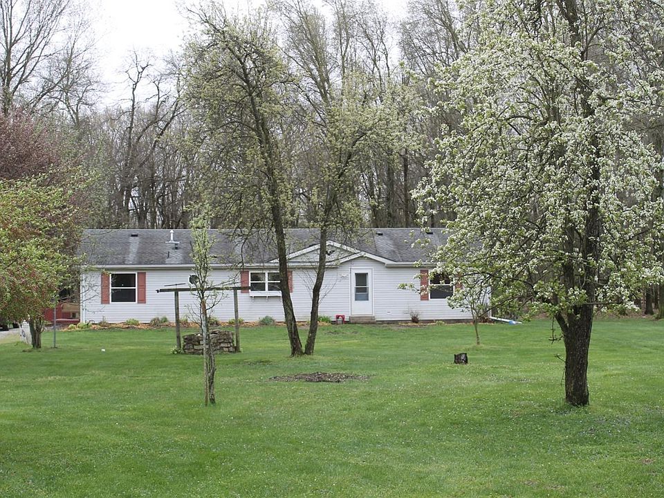 Secluded Country Acreage! This 3 Bedroom, 2 Bath Ranch has had several updates. All new flooring in the last 5 years, new HVAC & pump, outer doors and screen doors. Open Concept Kitchen, Living Room and Dining Room. Large Rooms. All appliances stay. Back acreage is wooded. Fencing is in 3 sections so you can move the animals around and has 2 lean to;s in fenced area. Pole Barn is 24 x 28 with built in workbench, separate well, enclosed lean-to and chicken coop. It also has a wood burning stove, grape vines, apple, cherry and peach trees plus blueberries throughout the property.